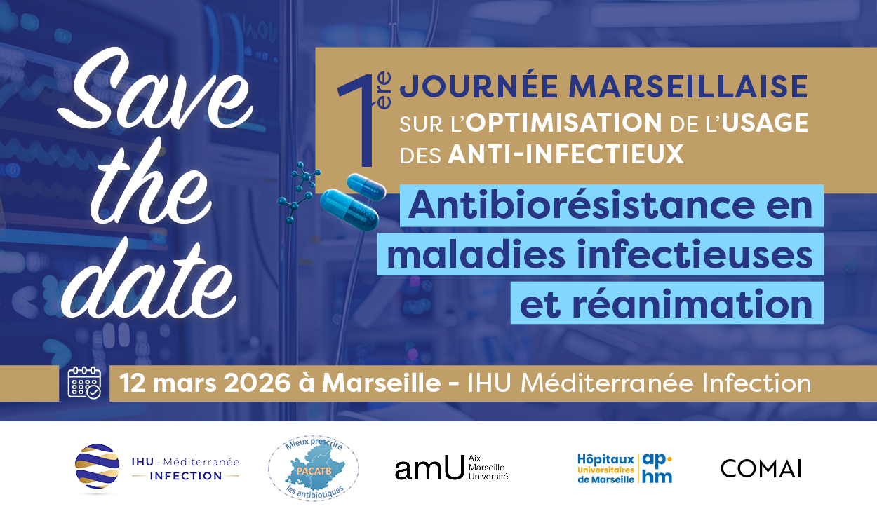 La 1ère Journée Marseillaise sur l’Optimisation de l’Usage des Anti-Infectieux se tiendra à l’Institut Méditerranée Infection (IHU) à Marseille, le 12 mars 2026 (en présentiel ou webinar).